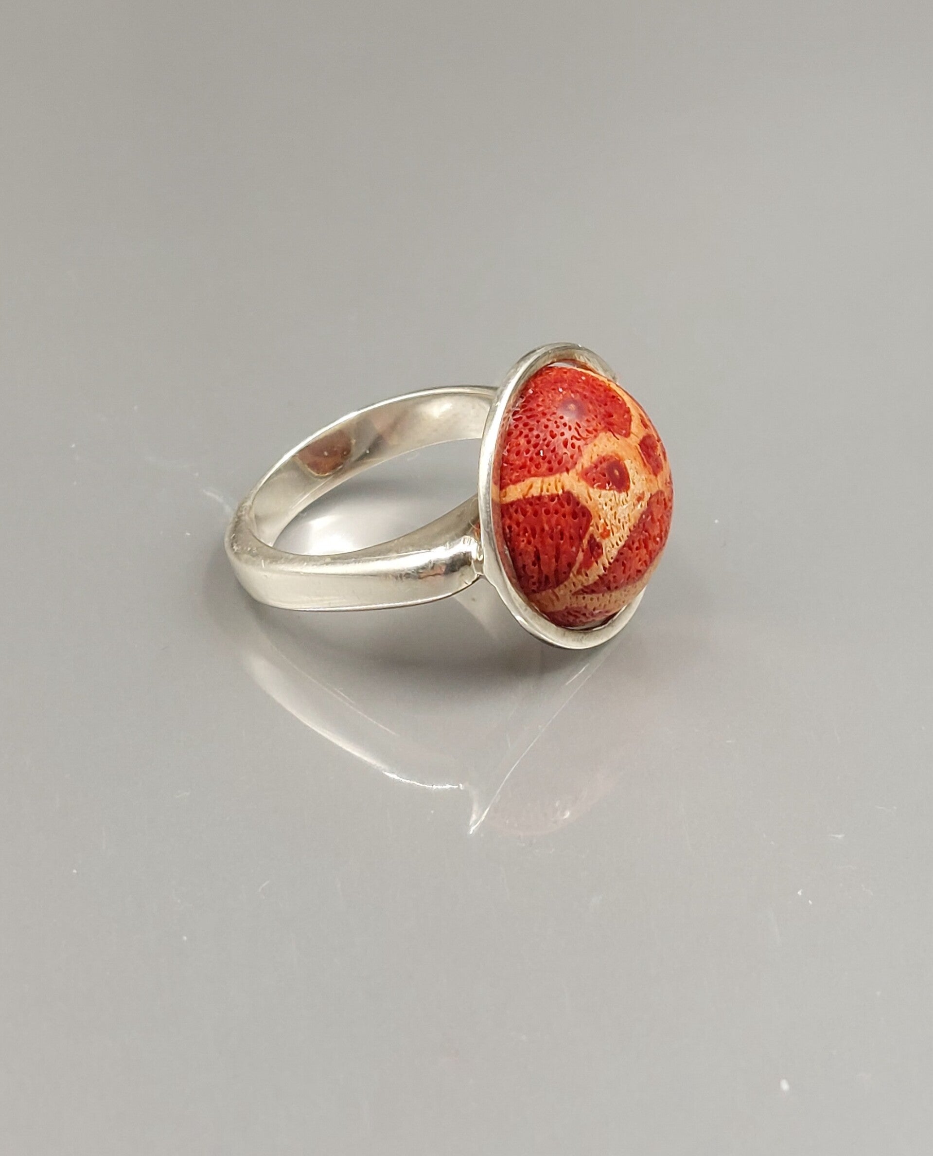 Zilveren ring met schuimkoraal